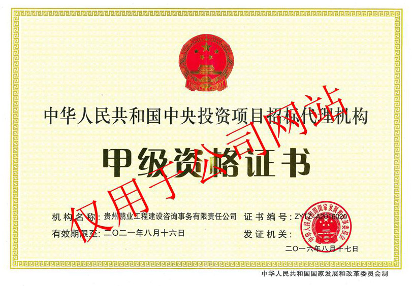 工程招標(biāo)代理甲級、工程造價咨詢甲級、工程監(jiān)理甲級、中央投資項目招標(biāo)代理甲級、政府采購代理甲級